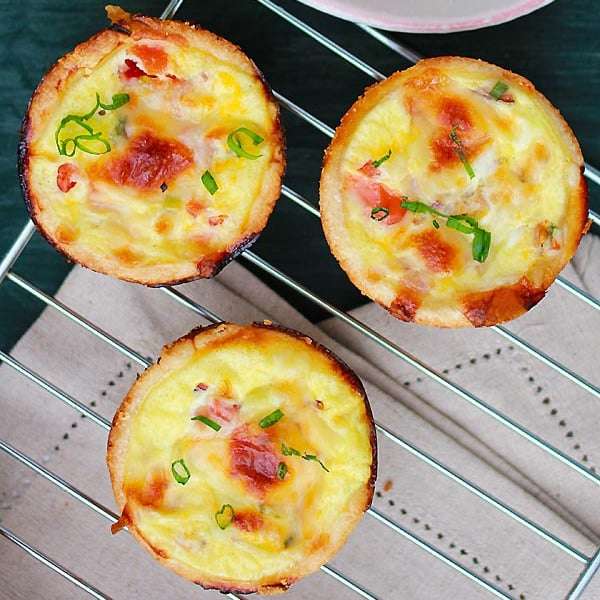 - Bake for 18-20 minutes, or until the mini quiches are set and golden. Garnish with chopped scallions and serve warm.