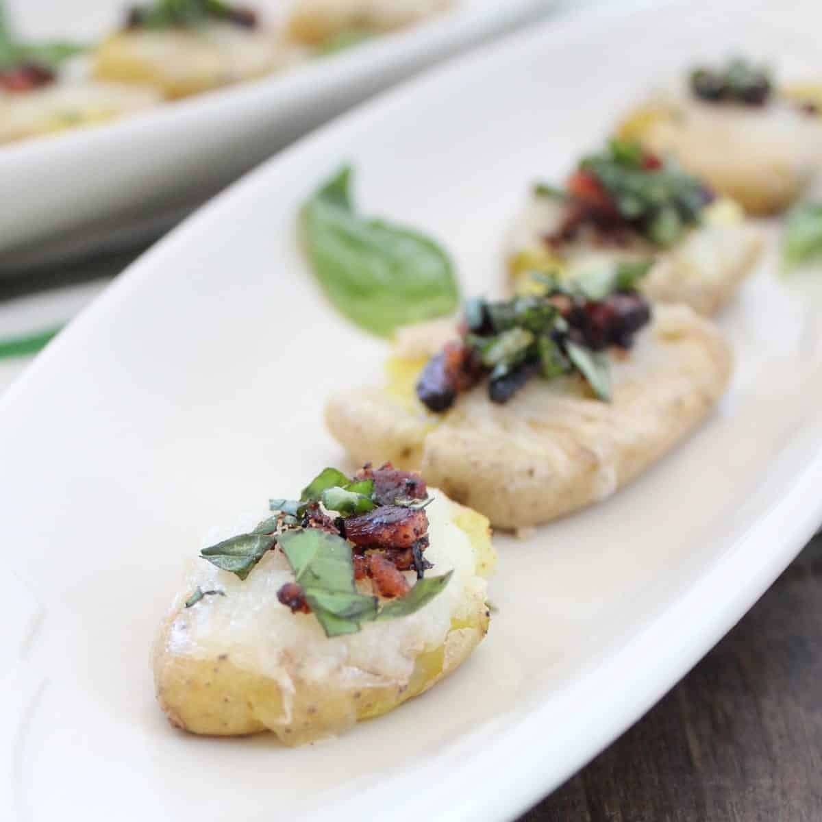 These Mini Potato Skins are the perfect tray passed appetizer for any party. All the delicious ingredients of potato skins in a bite sized recipe!