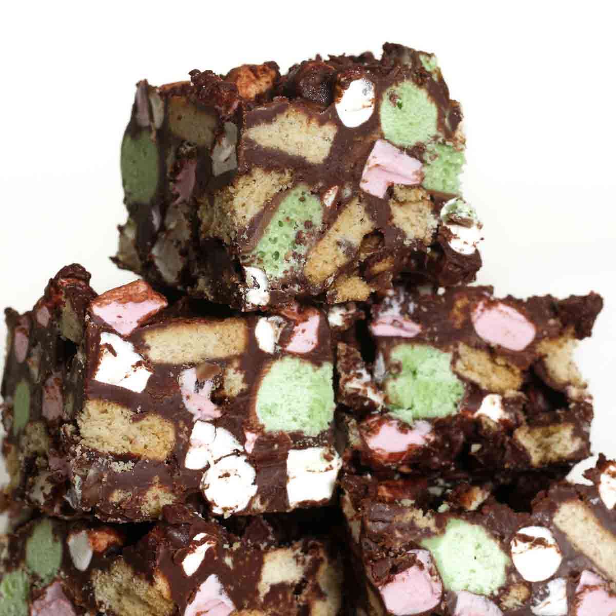 Mint chocolate rocky road packed with Mint Aero chocolate and Aero Bubbles!