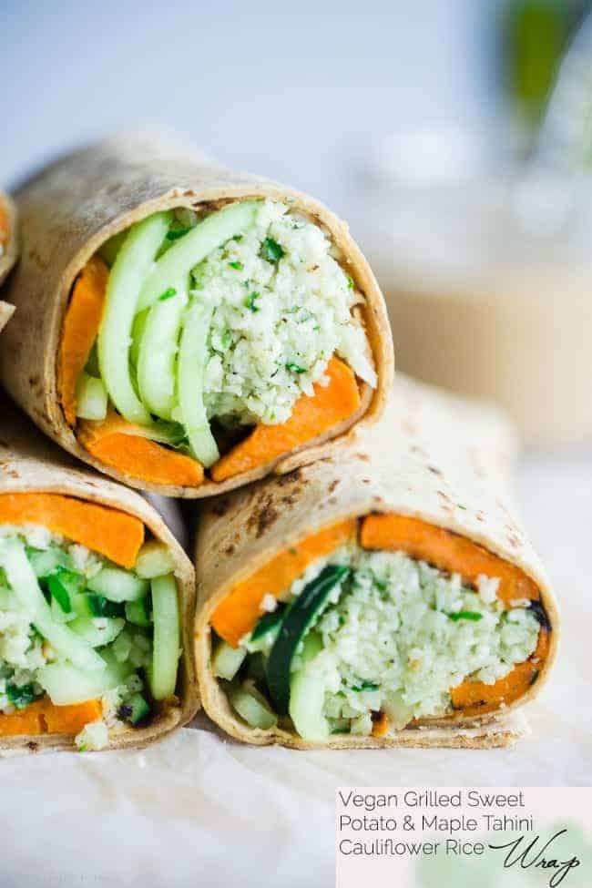 Mint Grilled Sweet Potatoes with Tahini Cauliflower Rice Wrap