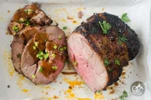 - Roast the lamb for about 2 hours (time will vary). If the lamb is darkening too much, cover it with a piece of foil. If the drippings below looks like its dry and might be burning, add a little extra water.