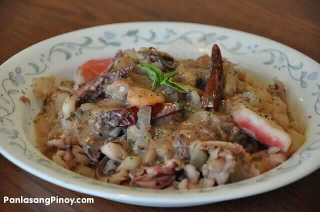 Seafood such as shrimp, crab, squid cooked in coconut milk