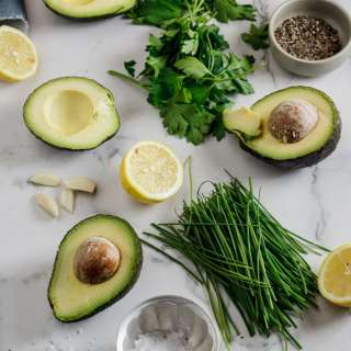 - Place all of the ingredients for the avocado dressing in a mixer and pulse until smooth and creamy. Set aside until ready to use.