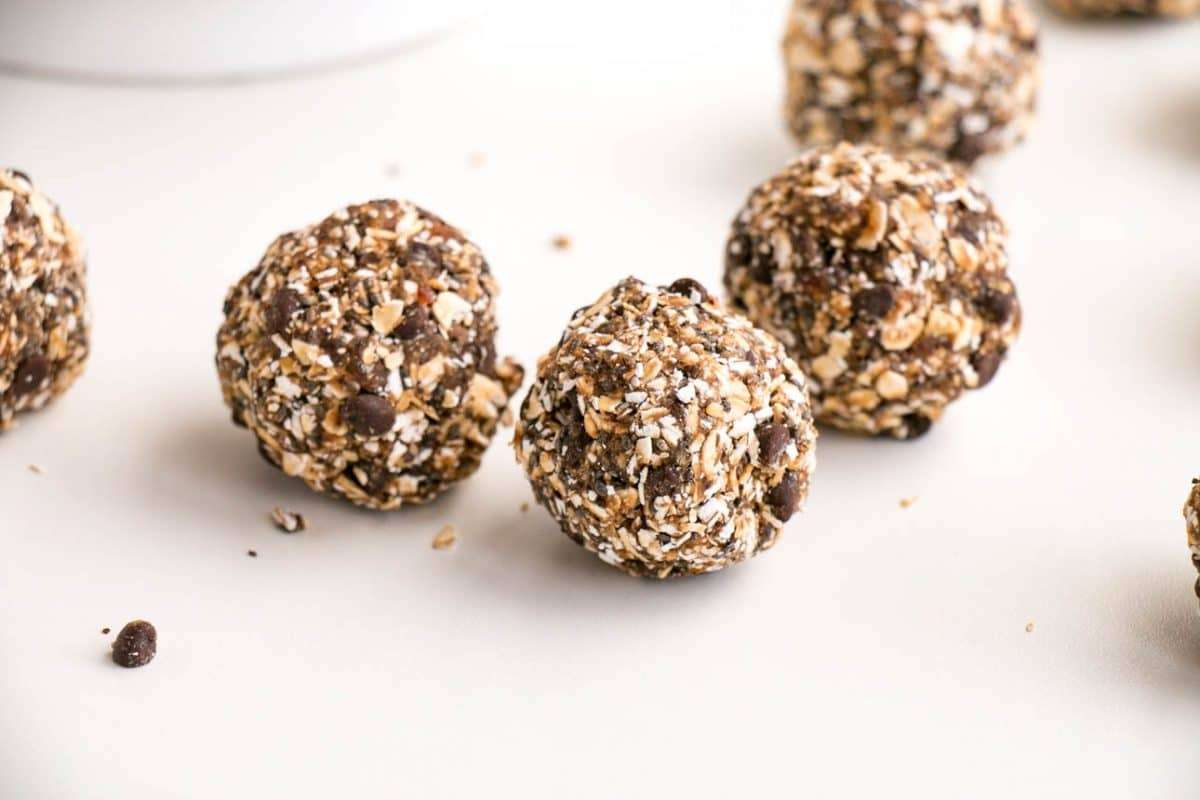 Delicious 5 ingredient, vegan, and nut-free energy bites or "Mocha Momma Bites" to get you through to the next meal.