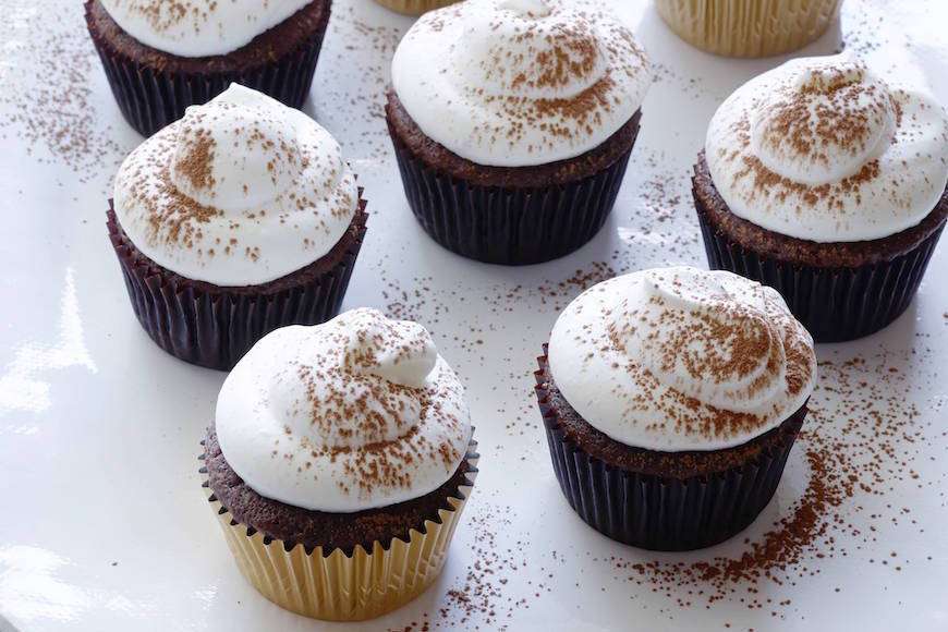 Devil’s Food Cupcakes stuffed with any variety of GODIVA’s Signature Holiday Truffles are baked to perfection and then topped with a dollop of freshly whipped cream.
