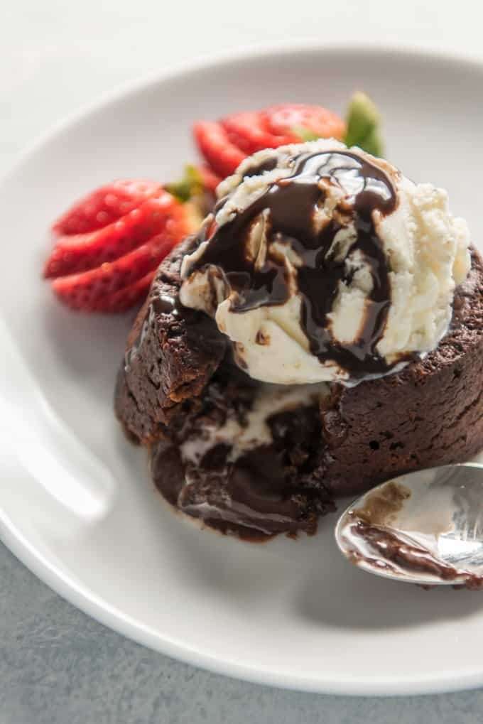 These rich, delicious Chocolate Molten Lava Cakes are sort of like a cross between a soufflé and a flourless chocolate cake, except much easier. They have a deep chocolate flavor with a molten, liquid inside that oozes out once you cut into each individually plated cake.