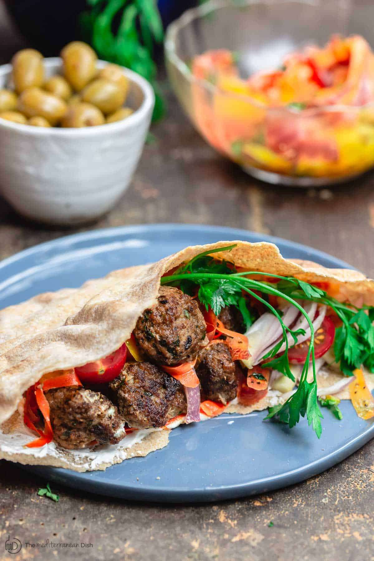 - This recipe will yield between 25 to 35 meatballs, depending on size. Served in pita pockets or with rice as dinner, it will serve 4 to 5 people. If you’re serving as an appetizer along with other items, it will serve up to 10 people.