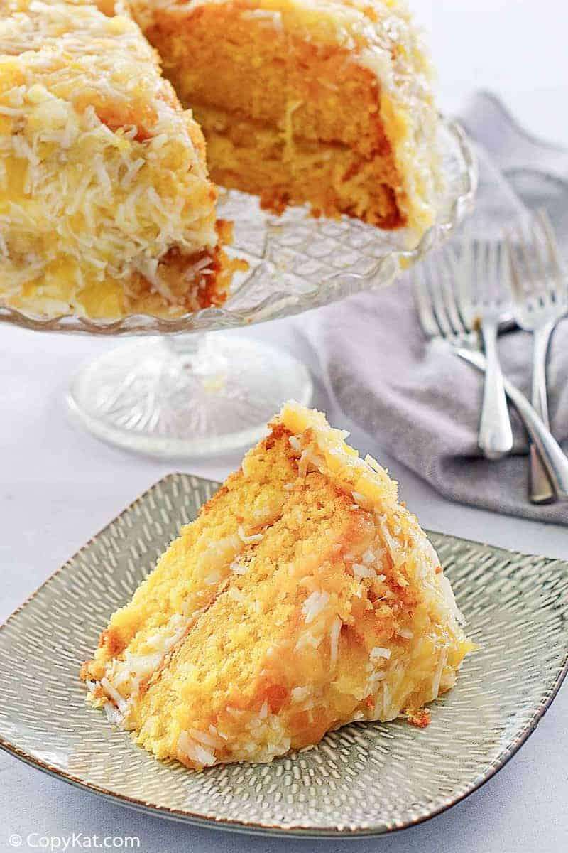 - Place 2 ounces of butter in a medium-sized pan over medium heat. Add 20 ounces of crushed pineapple, sugar, and cornstarch. Cook until hot and bubbly. Then add the coconut. Allow the frosting to cool, then spread over cooled cake.