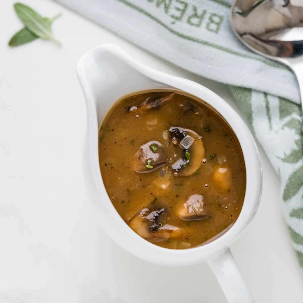 - Taste for seasonings and adjust as necessary, adding more salt or pepper if you like. Remove the mushroom sauce from the heat and pour into a gravy boat or bowl.