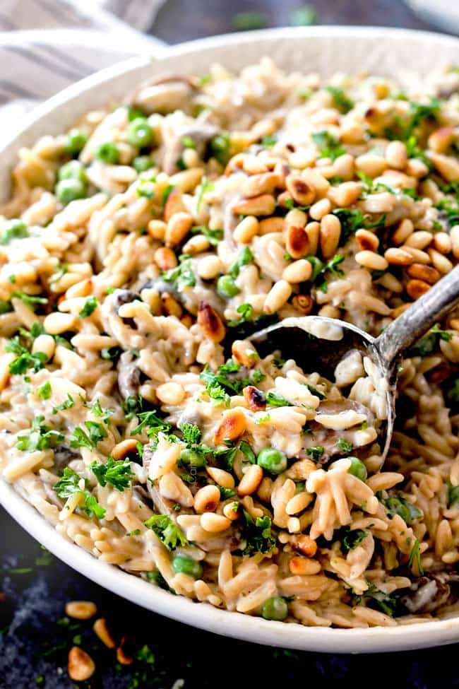Mushroom Orzo Pasta In Asiago Thyme Sauce