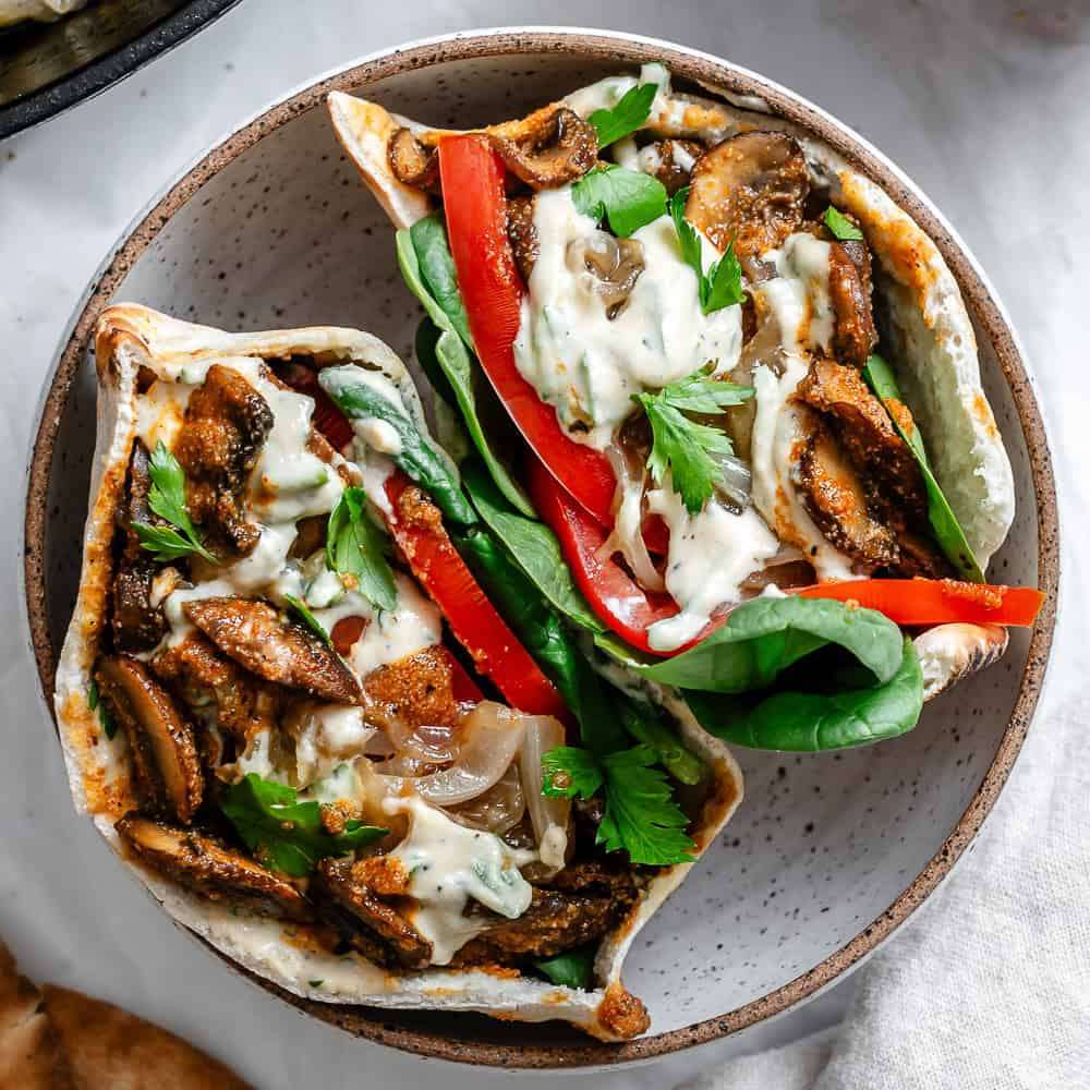 This simple and fuss-free vegan mushroom sandwich stuffs tender sauteed mushrooms, caramelized onions, and fresh veggies in a tahini sauce-slathered pita pocket, giving you a perfect plant-based lunch or healthy dinner!