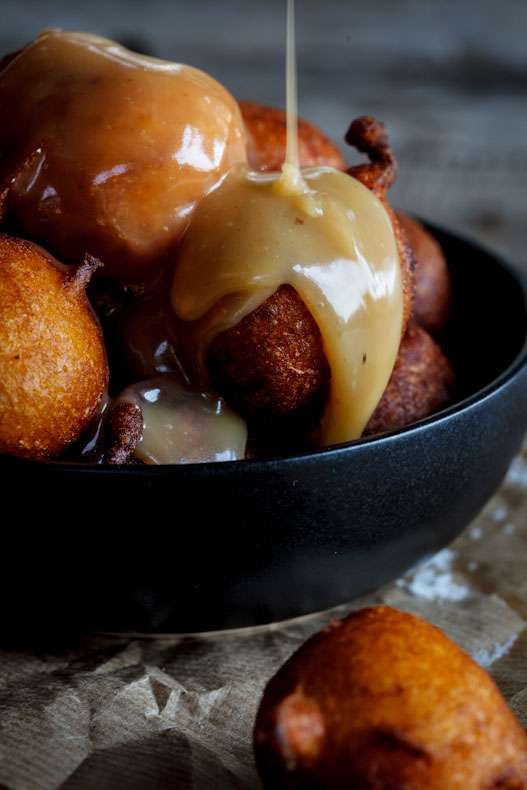 Light and fluffy pumpkin fritters (pampoen koekies) with caramel sauce. This recipe handed down to me by my grandmother is nostalgia on a plate.