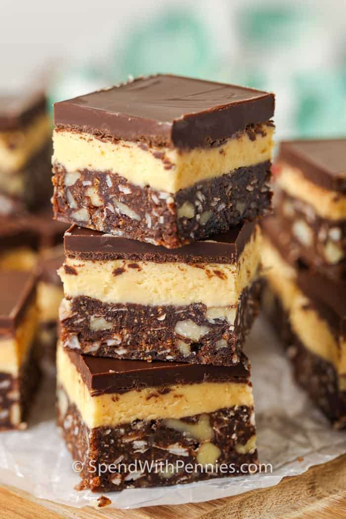 Nanaimo bars are one of those desserts no one can resist! A chocolatey nutty base topped with a sweet buttery custard layer and more chocolate.