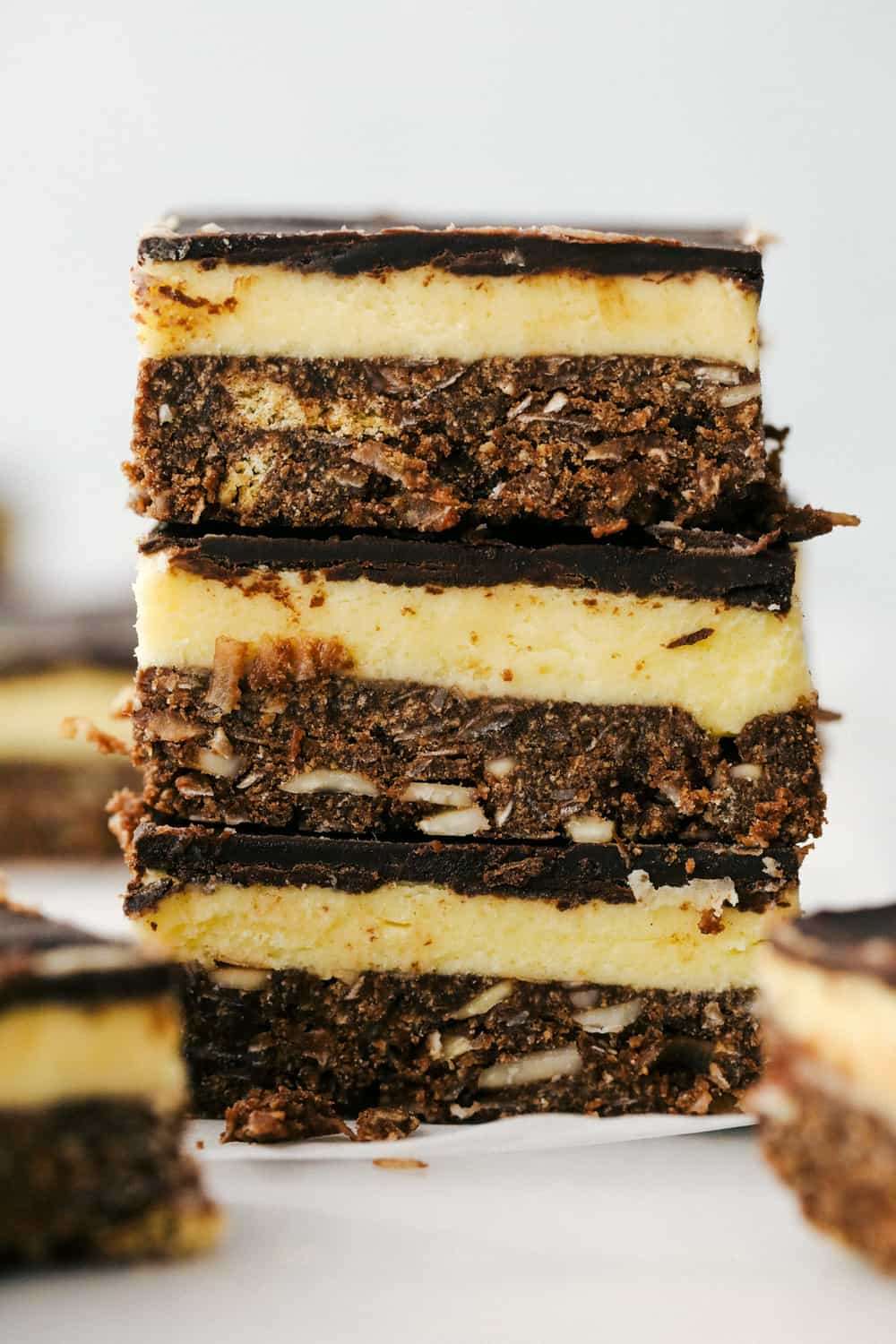 Nanaimo bars are a nutty, decadent dessert made with a graham cracker, coconut, and almond crust. Topped with buttery custard and melted chocolate, this creamy treat is the perfect sweet tooth fix.