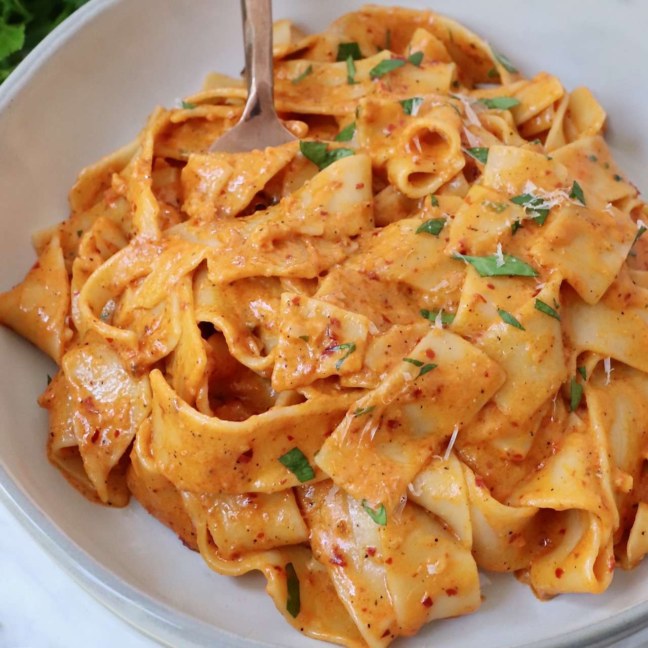 After just one bite, you'll fall in love with this Nduja Pasta recipe! Nduja is a spicy spreadable pork sausage from the Calabria region of Italy. It's full of flavor and one of my new favorite ingredients in the kitchen. It's easy to make this pasta recipe in just 20 minutes and you'll love the rich, creamy texture of the sauce, and the bright, spicy flavor!
