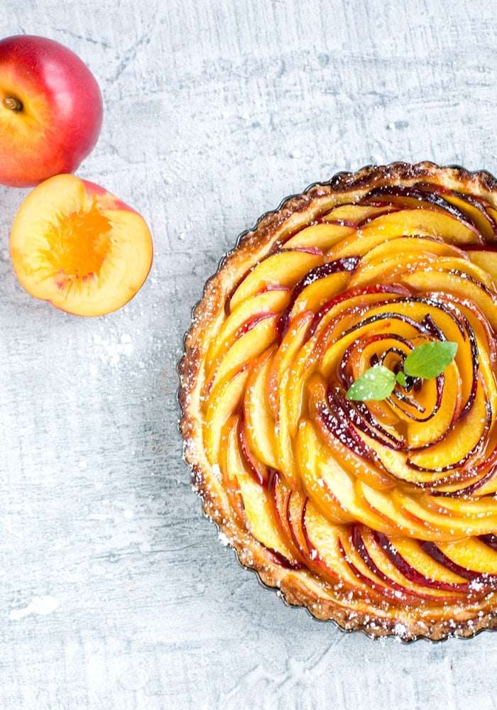 A gorgeous Nectarine Tart made with a magic dairy-free olive oil crust - A delicious simple summer treat that's super easy to make.
