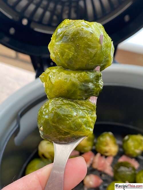 - Bacon. If you would like your sprouts with bacon, then I recommend adding them in when you air fry your sprouts.