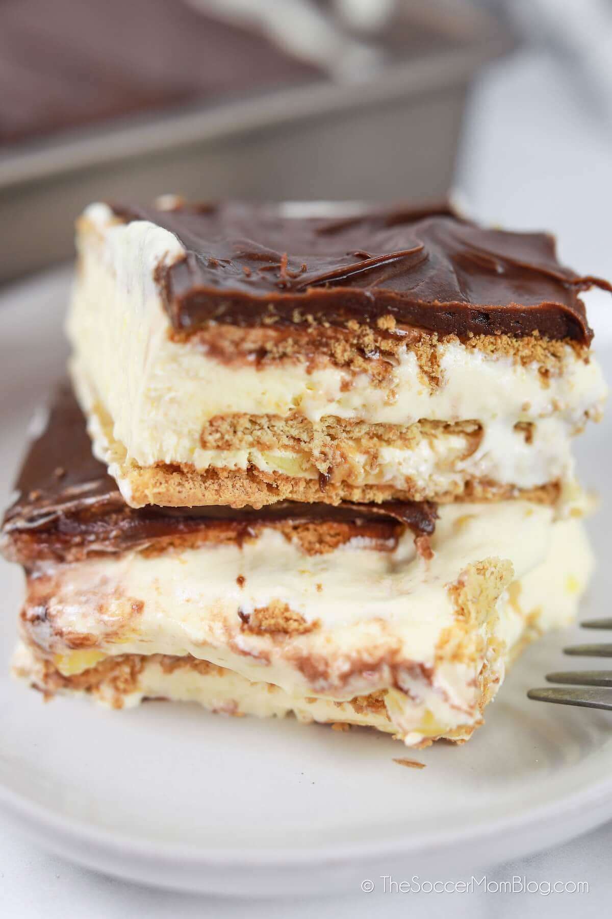 Inspired by the classic pastry, this chocolate eclair cake is cool, creamy, and chocolately! It's also super easy to make with only 4 ingredients and no baking needed!
