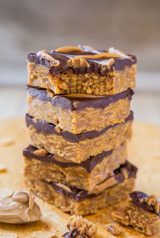 Peanut butter is used 3 times in these rich, soft, and very chewy Cornflake bars! It's a no-bake dessert that's made using just one bowl!