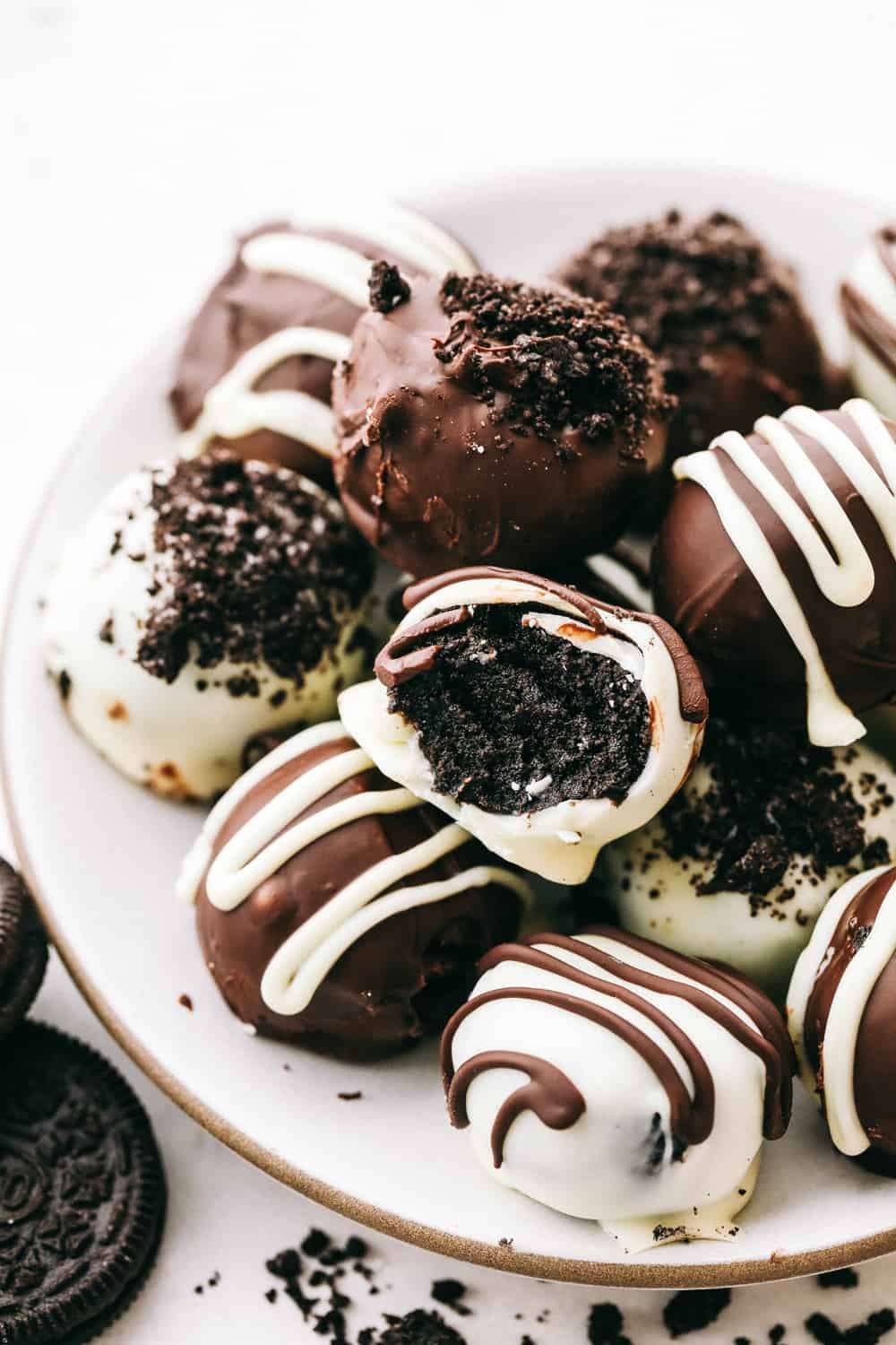 Easy no bake Oreo balls are decadent little truffles covered in a chocolate shell. Oreo crumbs and cream cheese create a sweet creamy texture on the inside. It only takes 3 simple ingredients to make this perfect party treat!