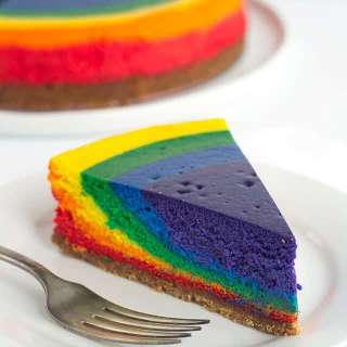 - Divide the cheesecake filling into 5 bowls and add a different food coloring to each bowl. Stir until combined.