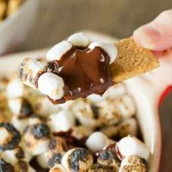 - Pour into a shallow serving dish and top with the miniature marshmallows. Use a kitchen torch to toast the marshmallows; serve with graham crackers.