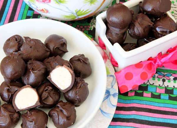 These easy-to-make, no-bake truffles with just 5 ingredients have a vanilla cake batter filling and are coated in rich semi-sweet chocolate. They’re always a hit at any party or event. They’ll keep for months in the fridge or freezer and can be made well in advance. Try other kinds of cake mix flavors to change up the filling. I like yellow butter cake or strawberry.