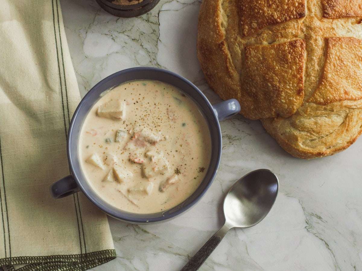 Craving that perfect bowl of Pike Place Chowder but live thousands of miles away from the mecca of chowder? Look no further than our rendition of their world-famous Smoked Salmon Chowder. Succulent hot smoked salmon mingles with salty capers and sautéed veggies in this classic dish from the Pacific Northwest.