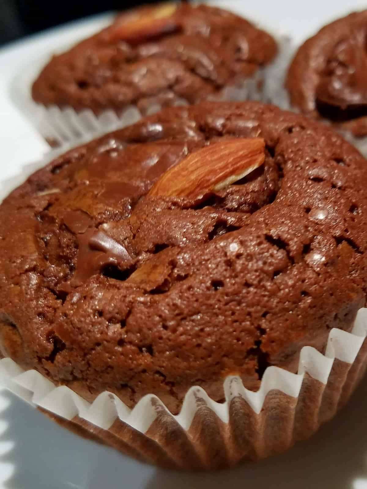- Pour the batter into each muffin liner, filling them about ¾ full. Add 1 teaspoon of Nutella into the center of each muffin. Sprinkle each muffin with chopped nuts or top with an almond each.