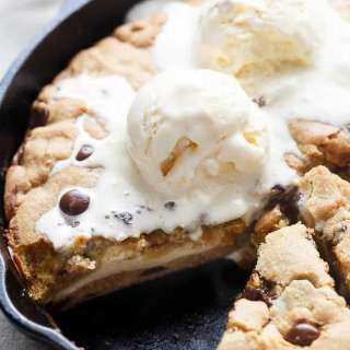 A buttery deep dish chocolate chip cookie with a surprise layer of gooey Nutella hidden inside!