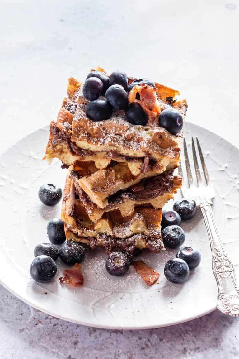 Enjoy these easy-to-make Stuffed Waffles, filled with creamy Nutella and crispy bacon.