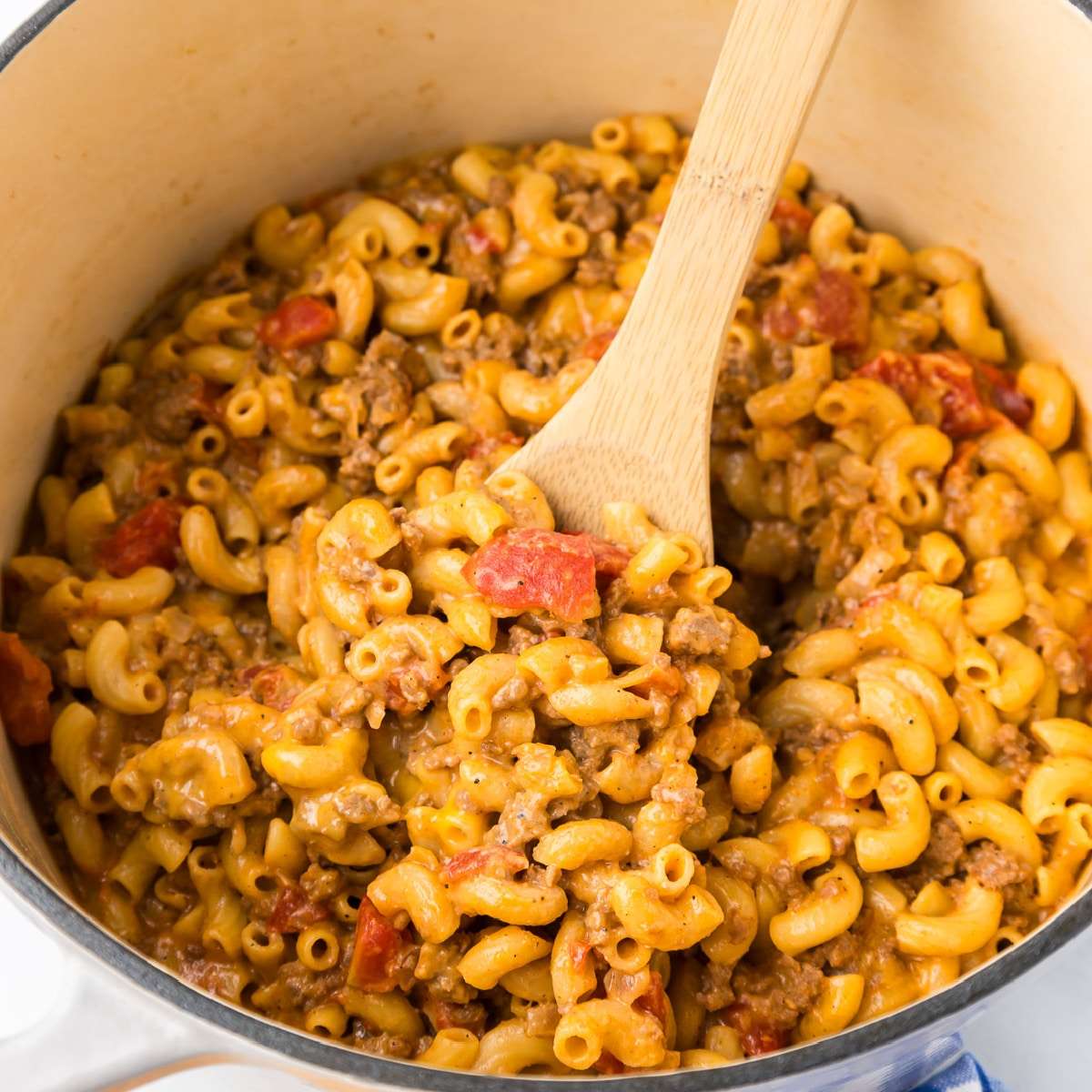 Quick, easy and tasty, this cheeseburger pasta comes together in under thirty minutes. This hearty one pot dinner full of all of your favorite flavors from a cheeseburger makes the perfect family friendly dinner.