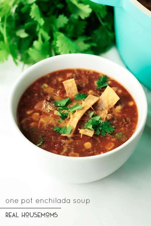 Dinner is served in just 30 minutes when you make this deliciously flavorful One Pot Enchilada Soup!