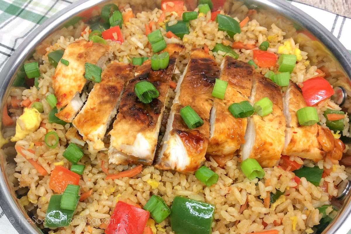 - Stir in the rice, broth, honey, soy sauce, vinegar, and peas. Bring to a simmer, cover, and cook until rice is tender. Stir once or twice to prevent scorching.