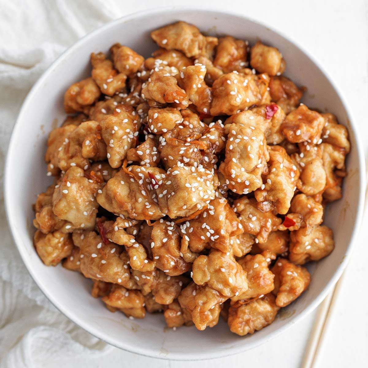 - Serve the orange chicken with an optional garnish of sesame seeds.