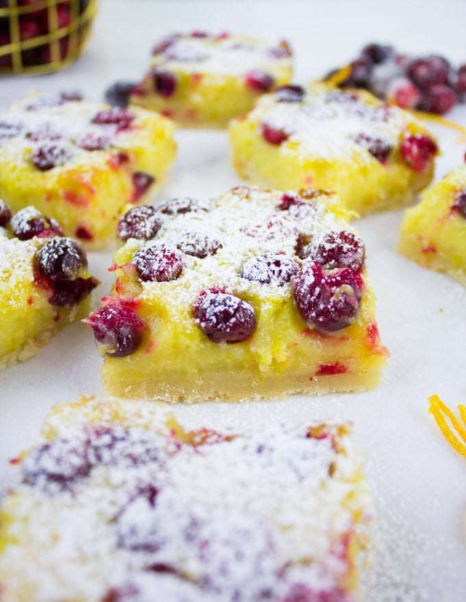 If you’ve been looking for a perfect Lemon Squares or Lemon Bars recipe, look no further! I’ve found these Orange Lemon Squares to be the perfect balance of tangy, citrusy, creamy and sweet. Every bite is pure lush! I’ve spiked them with some cranberries for a more festive look, but you can totally skip or swap that for another type of berry. This is a really easy one, just mix and bake :)