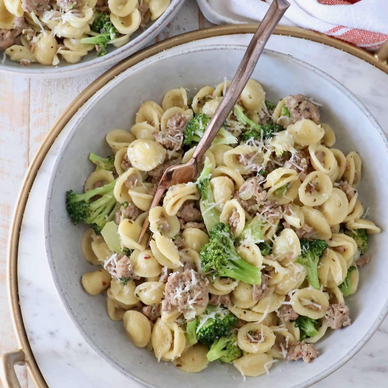 This recipe for Orecchiette with Sausage and Broccoli will become a regular staple on your weeknight dinner menu. This traditional Italian pasta dish is easy to make in just 25 minutes and it's packed with flavor!