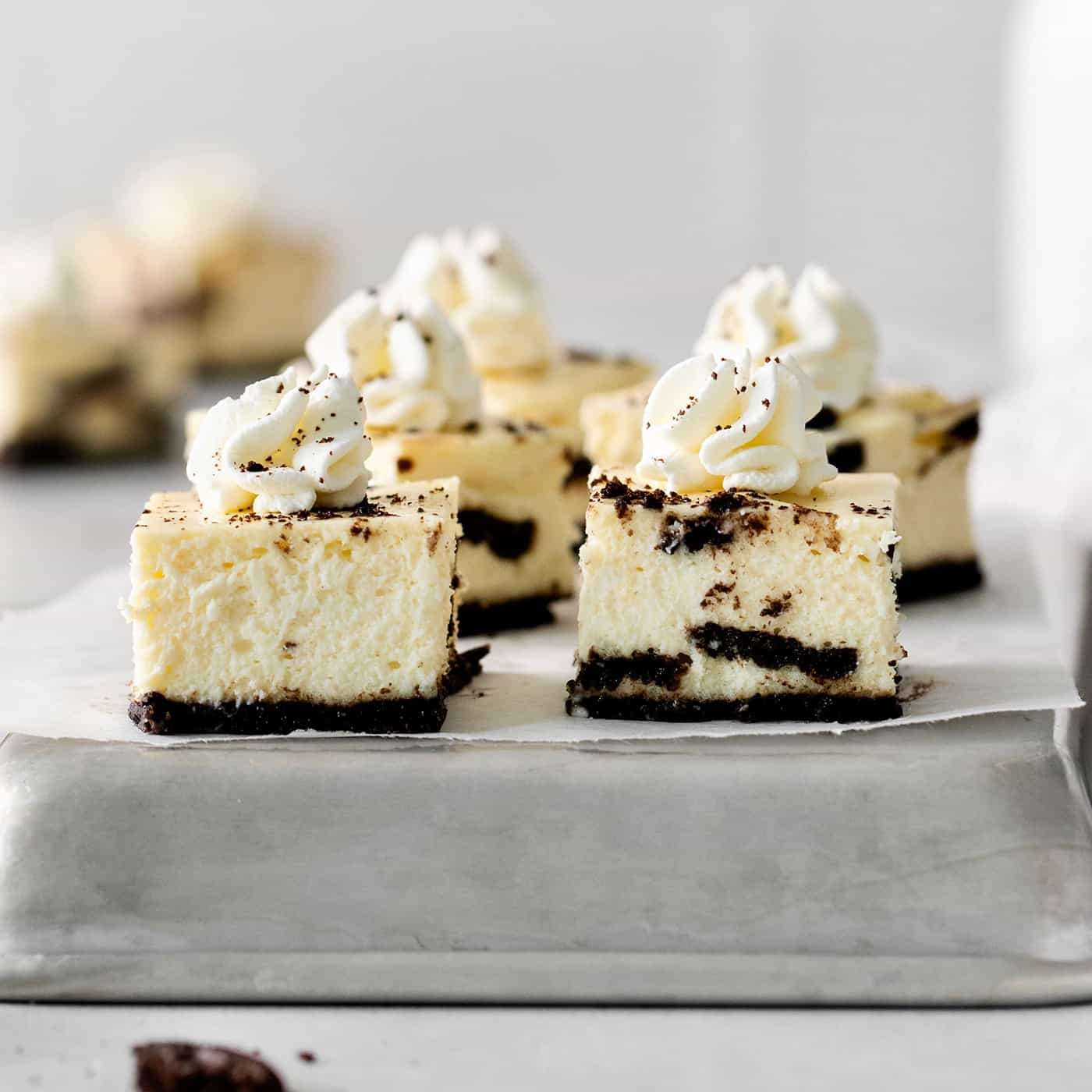 Perfectly creamy and flavorful, these Oreo Cheesecake Bites are absolutely divine. This is a mini cheesecake recipe anyone can make, as it requires just 7 ingredients and no water bath or special pan!