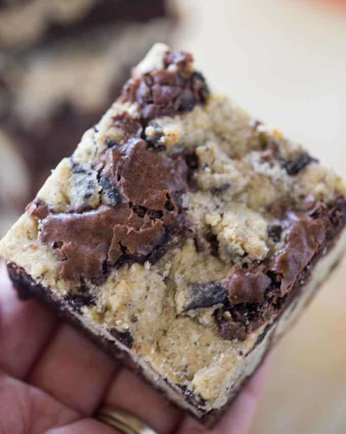 Oreo Chunk Brookies are the best of both worlds with an crispy oreo chunk cookie top and rich chewy dark chocolate brownie bottom.