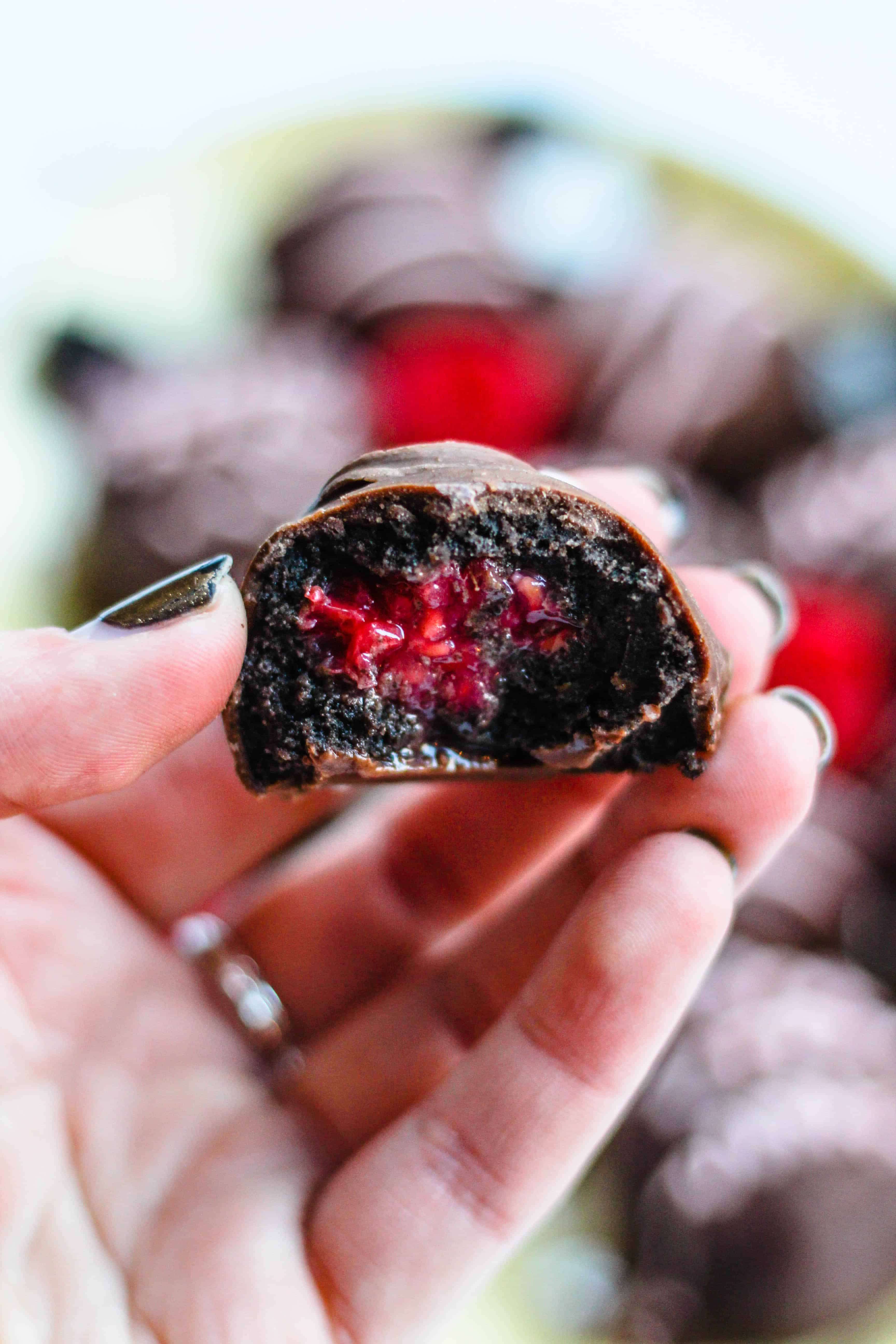 These Oreo Truffles are filled with a full raspberry. They are dipped in chocolate and are the perfect easy dessert for Valentine's Day!