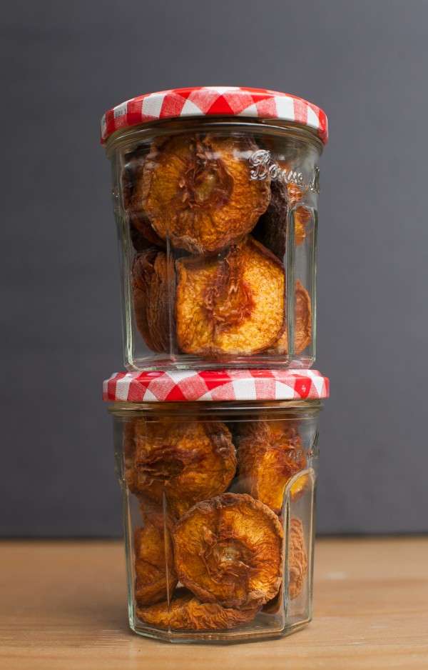 - Check periodically and taste test. Once peaches are sufficiently dried, remove from oven and cool. Package in ziplock bags or jars and freeze for up to 6 months.