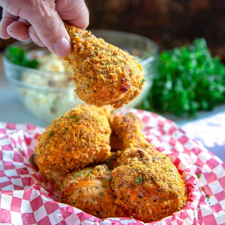 Oven fried chicken is moist and tender with an irresistible crunch. Avoid oil splatters and make this baked KFC copycat recipe instead!