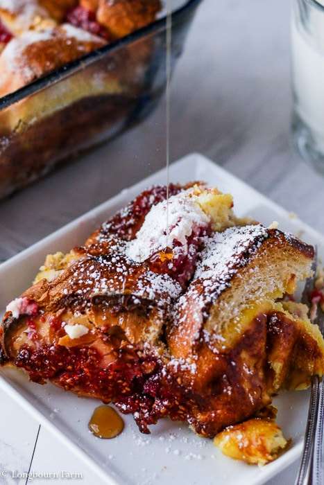 Overnight French Toast Bake is easy to put together, a great way to use up leftover bread, and a decadent breakfast for special occasions. Packed with flavor and layers of gooey bread, jam, and cream cheese this french toast bake is going to be a family favorite!