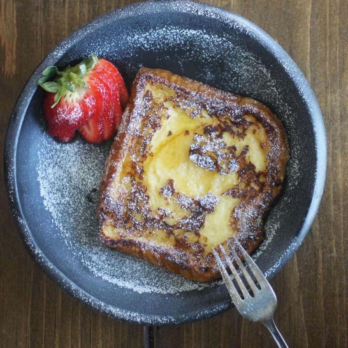 - Servir le pain perdu immédiatement, saupoudré de sucre en poudre et / ou accompagné de confiture ou de fruits rouges.