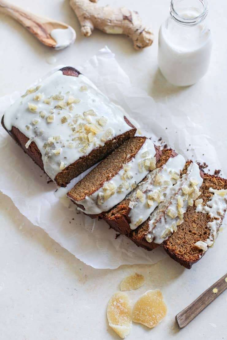 Grain-free gingerbread loaf with delicious glaze is a healthier take on the classic treat. Whip it up during the holiday season or any time of year!