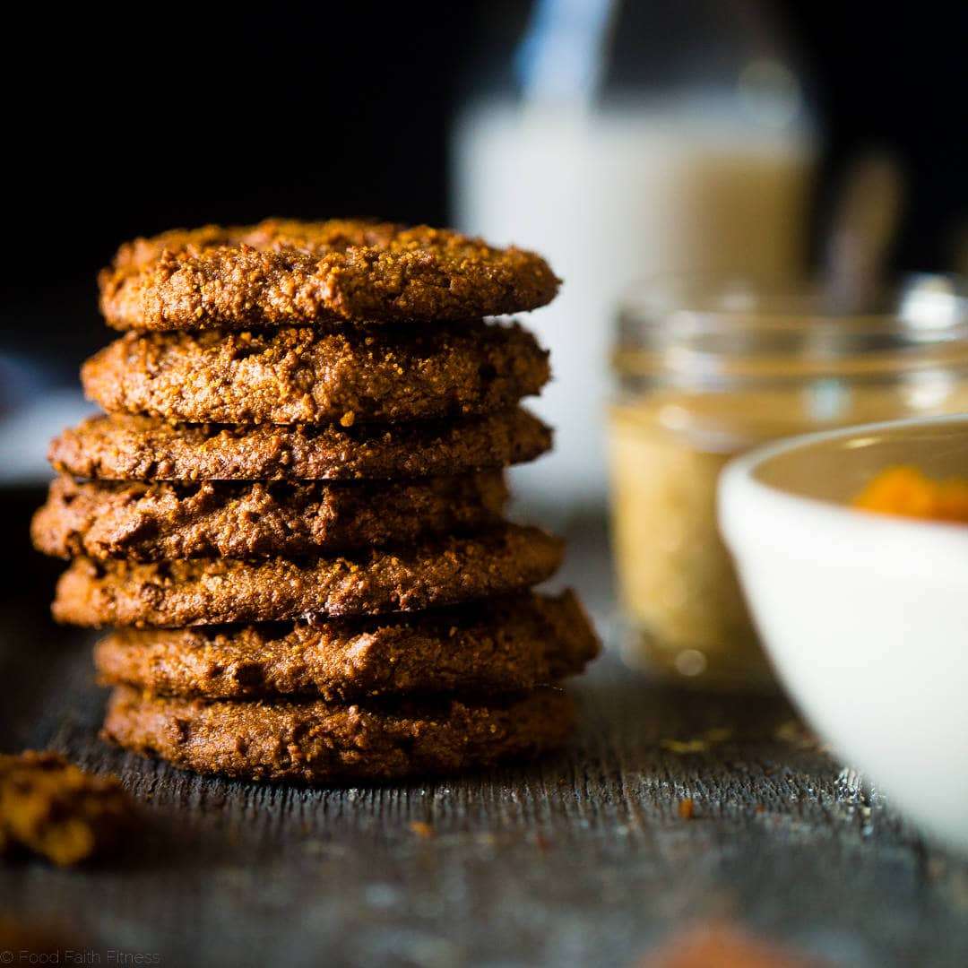 These 6 ingredient Pumpkin Paleo Cookies are soft, cakey and only 70 calories and made in one bowl! A healthy, gluten free dessert for fall!