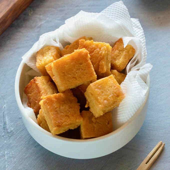 - Faire dorer les morceaux de panisse dans l’huile chaude sur les deux faces, pendant environ 3 minutes. Égoutter sur du papier absorbant.