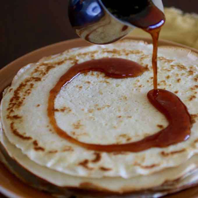 - Sirva los pannekoeken calientes o tibios, con una variedad de ingredientes dulces y salados, tales como appelstroop, mantequilla de maní, queso, compota, mermelada de frutas, tocino o azúcar.