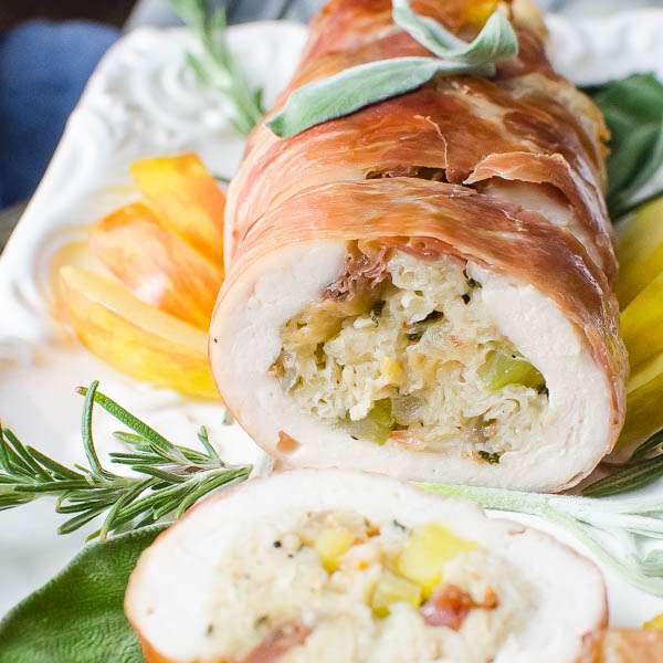 Tender, juicy turkey tenderloin with a savory parmesan apple stuffing and sage wine gravy! Ready in just over an hour!