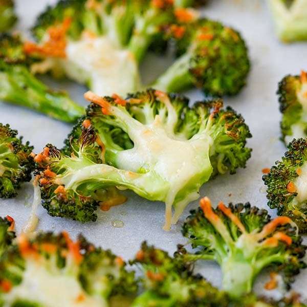- Remove the broccoli from the oven and sprinkle the grated Parmesan cheese on top. Roast again until the cheese melts and becomes slightly crusty, about 5 minutes. Remove from the oven and serve immediately.